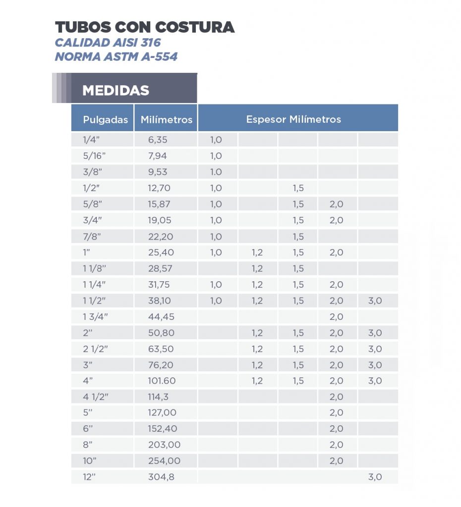 ¿Necesitas Tubos con Costura de Acero Inoxidable? Revisa las especificaciones técnicas y medidas que tenemos disponibles. Escríbenos a contacto@victormoroni.com y gestionaremos tu solicitud o visítanos directamente en Julio Bañados 2162, Quinta Normal.